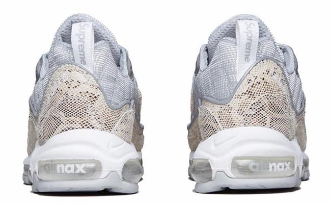 A snakeskin affect is used throughout much of the upper, while accents of grey compliment nicely. The silhouette is brought to life with the addition of 3M detailing. It makes the pair stand-out, especially on those dark nights. Sumpreme branding is stamped to the toe, but the pair stays true to the original with a classic logo on the tongue. Integrated laces guarantee that lock down fit and to complete the look, the pair sits on a white mid sole.